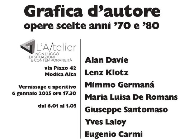 L’A/telier di Modica Alta (RG) sarà inaugurata la mostra Grafica d’autore.
