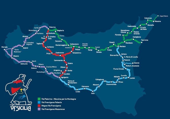 Qui in Sicilia è da intendere come percorso che si dipana da alcune località per giungere a Palermo o Messina, città portuali che permettevano l'imbarco dei pellegrini.